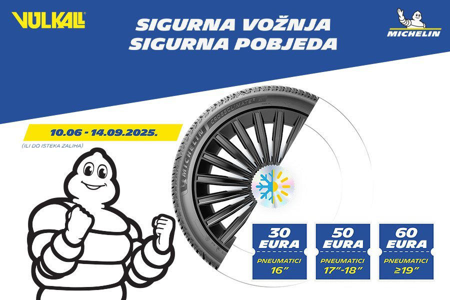 Michelin je organizirao posebnu kampanju usmjerenu ljubiteljima njegovih cjelogodišnjih guma. Popularnost cjelogodišnjih modela iz sezone u sezonu neprestano raste, a sada imate dodatni razlog za njihovu nabavku – servisni vaučer kojeg možete iskoristiti u svim Vulkalovim poslovnicama!