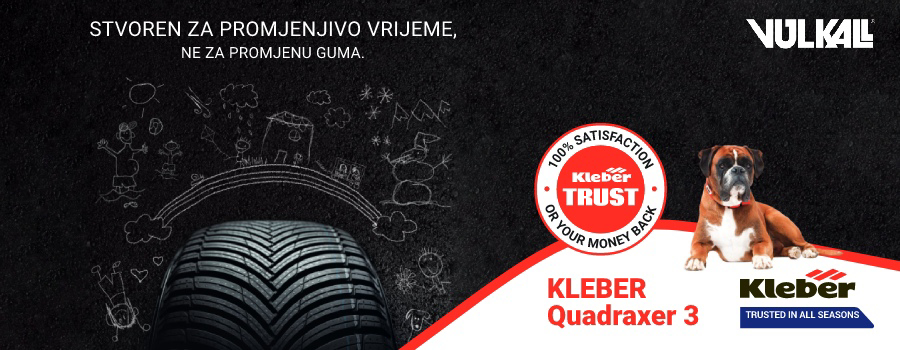 Kad smo kod uživanja u vožnji, za one koji žele otići još dalje i uštedjeti više, tu je najnoviji KLEBER Quadraxer 3, treća generacija Kleberovog univerzalnog pneumatika, dizajnirana za promjenjivo vrijeme, ne za promjenu guma. Za vozače koji ne žele misliti ni trošiti na sezonsku izmjenu pneumatika, a žele zadržati vrhunske performanse i prianjanje tijekom cijele godine. Za vozače koji ne rade velike kilometraže, ali zato traže vrhunsku izvedbu i udobnost.
