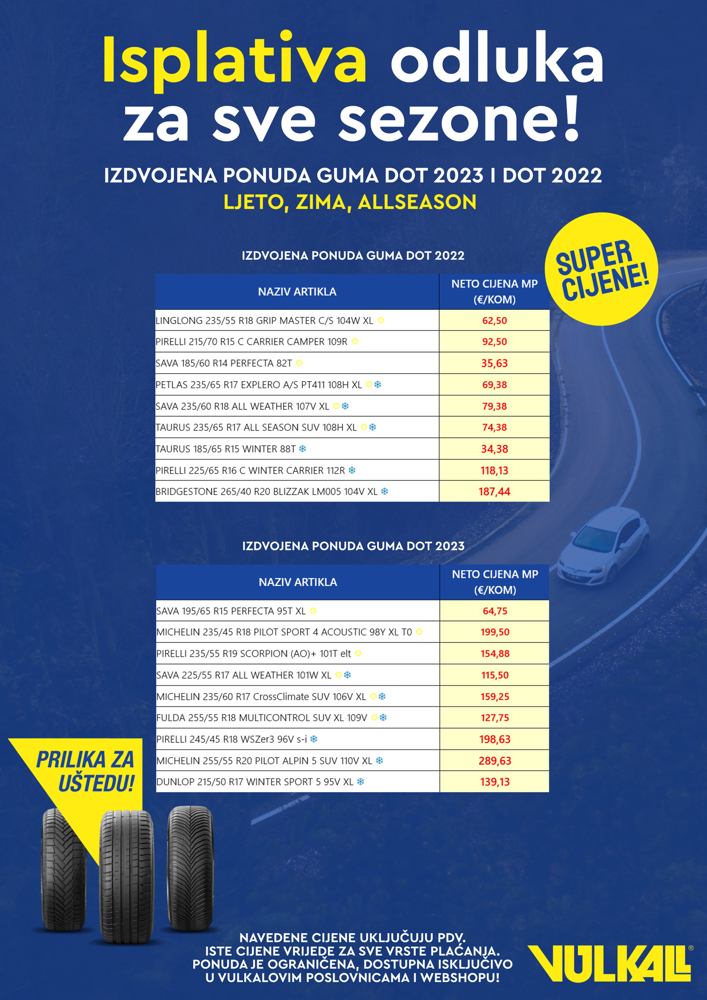 Ne čekajte predugo – ponuda vrijedi do isteka zaliha, a dostupna je u svim Vulkalovim poslovnicama te putem našeg webshopa.
