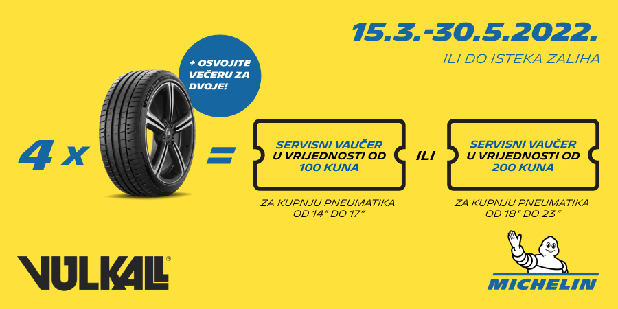 Opremite se za novu sezonu u Vulkalu; odaberite vrhunske Michelin pneumatike, a mi vas višestruko nagrađujemo!