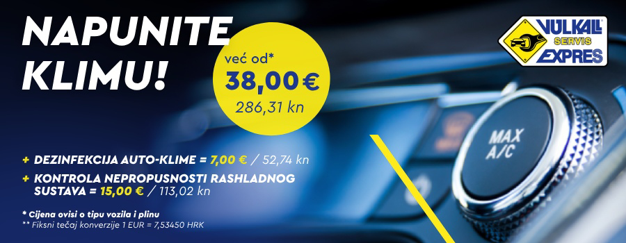 Cijena punjenja auto-klime kreće se od 50,00 EUR na više, ovisno o tipu vozila i plinu.