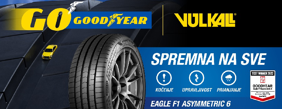 Tu je i najnovija ljetna senzacija, Goodyearova Eagle F1 Asymmetric 6-ica s iznimno visokim performansama, optimiziranim prianjanjem na suhim i mokrim površinama, preciznim upravljanjem i kratkim zaustavnim putom. UHP guma nadograđena Goodyearovim tehnologijama Dry Contact Plus i Wet Braking Pro čini vas spremnima na sve, neovisno o tome vozite li benzinca, dizelaša ili električno vozilo.