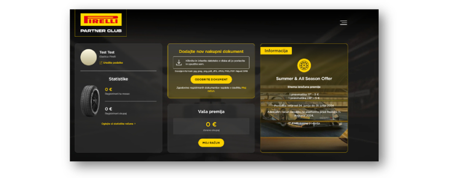 - Prijavite se na vaš račun unutar Pirelli Partners platforme;